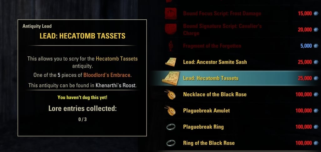 Antiquity Deal Intel expands lead tooltips in IA or IC stores with information about whether you already dug corresponding antiquities up or not and also how many lore entries you already got.