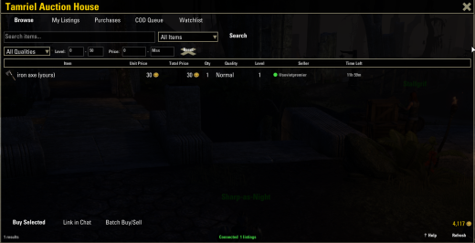 # Tamriel Auction House User Guide & FAQ## What is Tamriel Auction House?Tamriel Auction House is a cross-guild, server-wide trading system for Elder Scrolls Online. Unlike guild traders, which require guild membership and only show items from one guild at a time, Tamriel Auction House lets every player list and buy items from a single shared marketplace similar to an MMO auction house.It consists of three parts that work together:- **The ESO Addon** An in-game interface for browsing, buying, listing, and managing your trades- **The Desktop Client** A small background app that syncs your addon data with the central server- **The Web Dashboard** A browser-based view of all active listings at tamriel-ah.org—## Getting Started### Step 1: Install the Addon1. Download the **AuctionHouse** addon folder2. Place it in your ESO addons directory: – **Windows:** `DocumentsElder Scrolls OnlineliveAddOnsAuctionHouse` – **EU Server:** Use the `liveeu` folder instead of `live` – **PTS:** Use the `pts` folder instead of `live`3. Launch ESO and enable “Auction House” in the addon manager4. Type `/reloadui` to load the addon### Step 2: Install the Desktop Client1. Unzip one of thse Tamriel Auction House zip files inside the AuctionHouse folder that is for your Operating System2. On first launch, it will auto-detect your ESO installation directory3. If it doesn’t detect automatically, click **Browse** and select your ESO folder (the one containing the `live` or `liveeu` folder)4. The client will register your account with the server and begin syncing5. **Keep the client running** in the background while you play you can minimize it### Step 3: Open the Auction House- Type `/ah` in chat to open the Auction House window, or- Use the keybind you set in ESO’s Controls menu—## How Trading WorksTamriel Auction House uses a **Cash on Delivery (COD)** mail system, which is ESO’s built-in mechanism for sending items with a required payment.### Selling an Item1. Open your inventory2. Right-click an item and select **”List on Tamriel Auction House”**3. Enter your asking price and choose a listing duration (12 hours to 7 days)4. Confirm the listing then your ui will reload(to send the data to the server)5. Your item appears on the Browse tab for all players to see6. When someone buys your item, you will receive a **desktop notification** with a sound alert telling you to `/reloadui`7. After reloading, go to the **COD Queue** tab, select the sale, and click **Send COD**8. The addon opens ESO’s mail window, pre-fills the recipient, item, and details you just type the COD amount and click Send9. Once the buyer accepts the COD, the sale is complete### Buying an Item1. Open the Auction House and go to the **Browse** tab2. Search for items by name or use the filters (quality, level, price)3. Click an item to select it (it will highlight in gold)4. Click **Buy Selected** or double-click the listing5. Confirm the purchase in the popup dialog then your UI will reload(to send the data to the server)6. Wait for the seller to send you a COD mail (you’ll see it in your Purchases tab)7. When the COD arrives, open your mail the addon will verify the item and price match8. Accept the COD to complete the purchase### What Happens Behind the Scenes1. You click Buy → the addon queues a purchase action2. On `/reloadui`, the desktop client sends this to the server3. The server marks the listing as reserved for you (24-hour window)4. The seller gets a desktop notification and sees it in their COD Queue5. The seller sends you a COD mail via ESO’s mail system6. You accept the COD → gold transfers to seller, item transfers to you7. Both sides sync as complete—## The Tabs### BrowseThe main marketplace. Shows all active listings from every player on your megaserver (NA or EU).- **Search Bar** Type an item name to search- **Category Dropdown** Filter by item category (Weapons, Armor, Consumables, etc.)- **Quality Dropdown** Filter by item quality (defaults to “All Qualities”)- **Level Range** Set minimum and maximum level- **Price Range** Set minimum and maximum price- **Search Button** Execute the search with current filters- **Reset Button** Clear all filters- **Column Headers** Click any column header to sort by that columnHover over any listing to see the full ESO-style item tooltip.### My ListingsShows all items you have listed for sale. From here you can:- **Cancel Selected** Remove a listing from the market- **Link in Chat** Post the item link in chatThe Time Left column shows how long until each listing expires.### PurchasesShows items you’ve bought that are awaiting delivery. Statuses include:- **Awaiting COD** Waiting for the seller to send the COD mail- **COD Sent** Seller sent the COD, check your mail- **Completed** Transaction finished (automatically removed)You can cancel a purchase if the seller hasn’t sent the COD yet.### COD QueueShows items you’ve sold that need to be sent to buyers. For each sale:1. Select the sale2. Click **Send COD** this opens the mail window with everything pre-filled3. Type the COD amount (the price you listed it for)4. Click Send in the ESO mail windowYou can also **Release** a sale to put the listing back on the market if you no longer want to sell.### WatchlistTrack items you’re interested in for price changes.—## Buttons & Controls| Button | What It Does ||——–|————-|| **Refresh** | Reloads the UI to fetch the latest data from the server. Also disables Batch mode if active. || **Help (?)** | Shows help information and keybinds || **Search** | Searches listings by name and currently applied filters || **Reset** | Clears all search filters back to defaults || **Buy Selected** | Purchases the selected listing (Browse tab) || **Cancel Selected** | Cancels your selected listing (My Listings tab) || **Send COD** | Opens the mail window to send a COD for a sale (COD Queue tab) || **Cancel Purchase** | Cancels your purchase, releasing the listing (P
