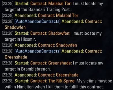 Auto Abandon Not Killing Spree Contracts is a lightweight addon, that automatically abandons contract quests from the Sanctuary board after picking them up.
