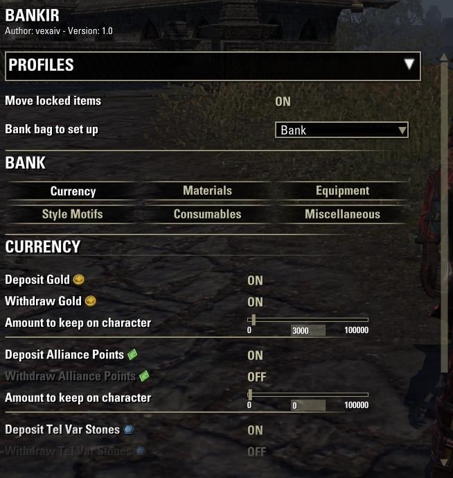 – I have no ESO+ so I have no idea whether Bankir works correctly with the extended ESO+ bank space. I looked into the other addons to understand how they handle it and did same things but I can’t test it.
