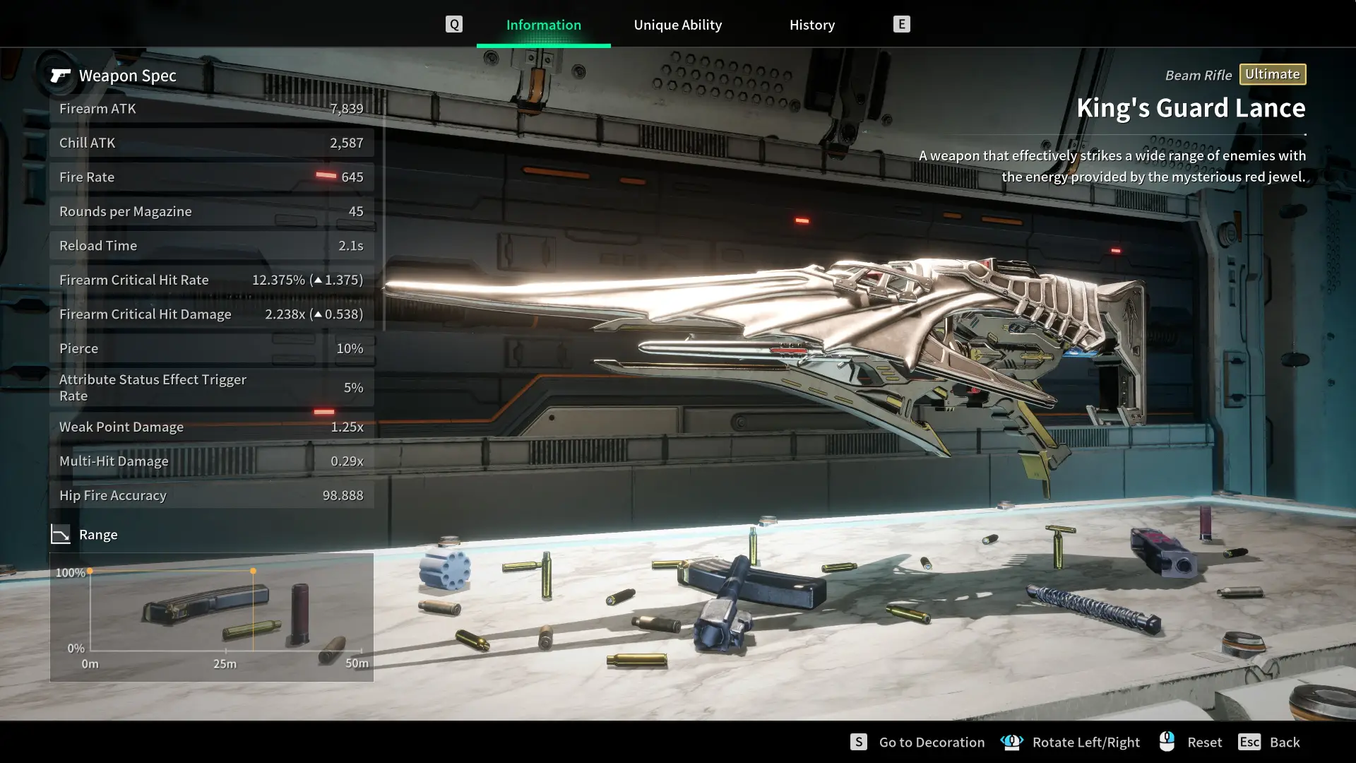 The King’s Guard Lance is an Ultimate Beam Rifle. A weapon that effectively strikes a wide range of enemies with the energy provided by the mysterious red jewel.