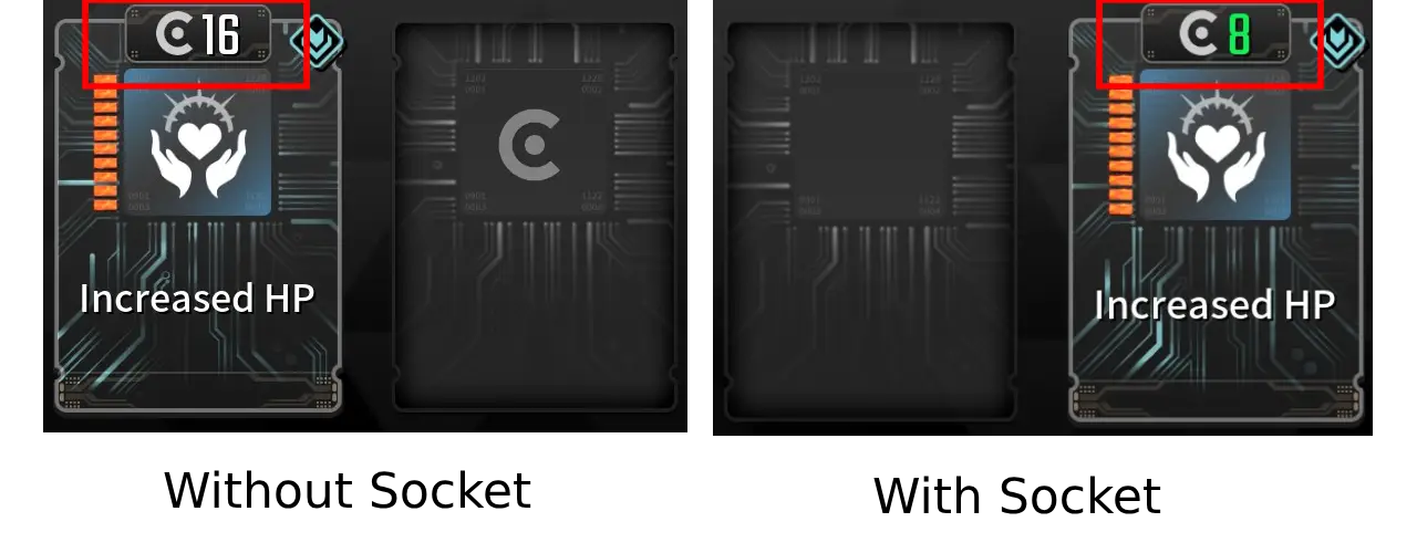 This is important because if we place our Increased HP Module in the fitting Socket Type, it will half the cost of the Module!