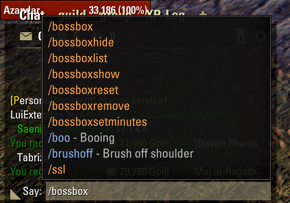 /bossboxlist: Displays all current keywords you are tracking in the chat window.