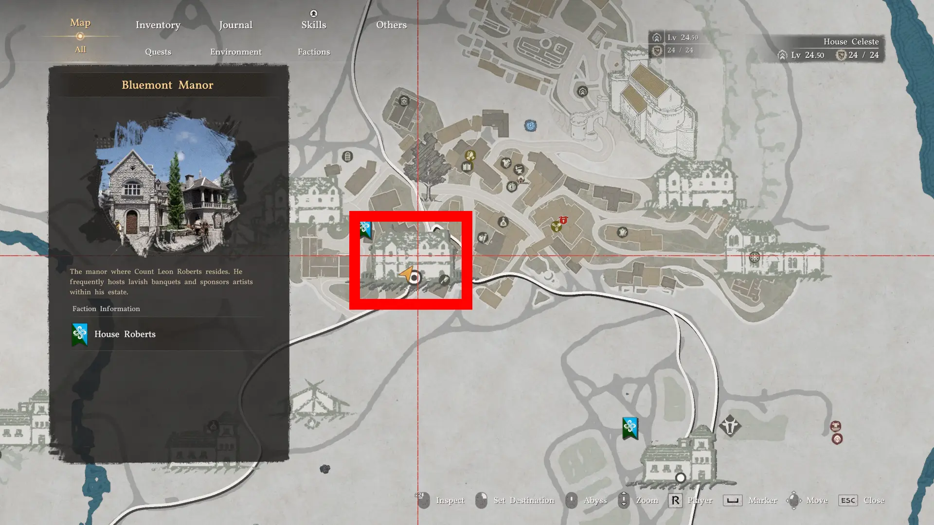 - Visit Hernand Town and enter Bluemont Manor via the wooden window.