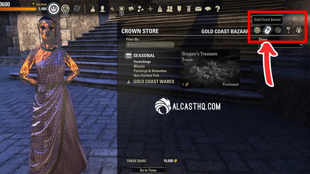 ESO Gold Coast Bazaar tab location in the Crown Store interface