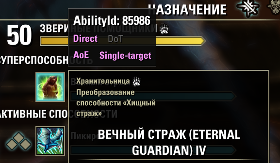 Adds a small tooltip for the abilities with the types of damage: Single, DoT, Direct, AoE.